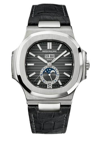 5726A-001 Nautilus 40.5mm Matte Black Alligator Strap Black Embossed Dial Steel Bezel