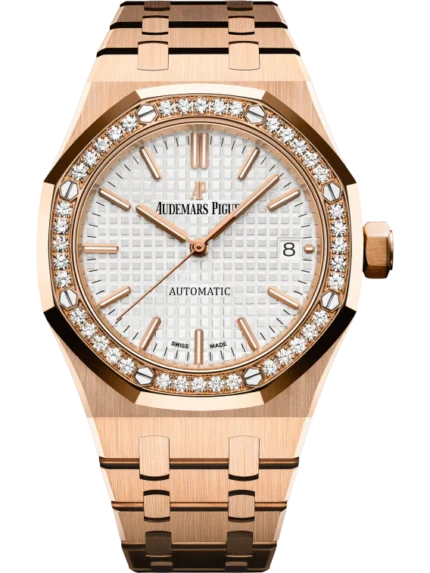 Royal Oak Selfwinding 37MM 18-Carat Rose Gold Bracelet Silver-Toned Dial With Grande Tapisserie Pattern 18-Carat Rose Gold Case Rose Gold Diamond-Set Bezel SELFWINDING Ref. 15451OR.ZZ.1256OR.01