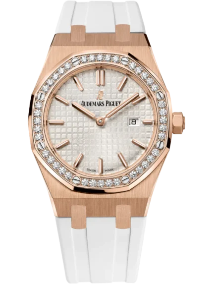 Royal Oak Quartz 33MM White Rubber Strap Silver-Toned Dial With Grande Tapisserie Pattern 18-Carat Pink Gold Case Diamond-Set Bezel QUARTZ Ref. 67651OR.ZZ.D010CA.01