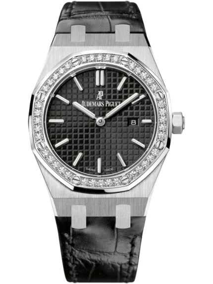 Royal Oak Quartz 33MM Black Alligator Strap Black Dial With Grande Tapisserie Pattern Stainless Steel Case Diamond-Set Bezel QUARTZ Ref. 67651ST.ZZ.D002CR.01