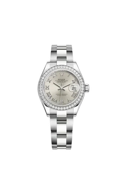 Lady-DateJust 28mm Oyster Oystersteel Bracelet And White Gold With Silver Dial Diamond-Set Bezel Reference 279384RBR