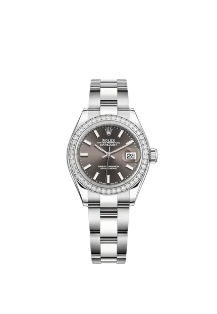 Lady-DateJust 28mm Oyster Oystersteel Bracelet And White Gold With Dark Grey Dial Diamond-Set Bezel Reference 279384RBR