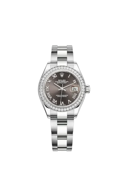 Lady-DateJust 28mm Oystersteel Jubilee Bracelet And White Gold With Dark Grey Dial Diamond-Set Dial Diamond-Set Bezel Reference 279384RBR