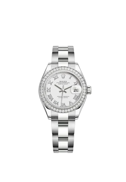 Lady-DateJust 28mm Oyster Oystersteel Bracelet And White Gold With White Dial Diamond-Set Bezel Reference 279384RBR
