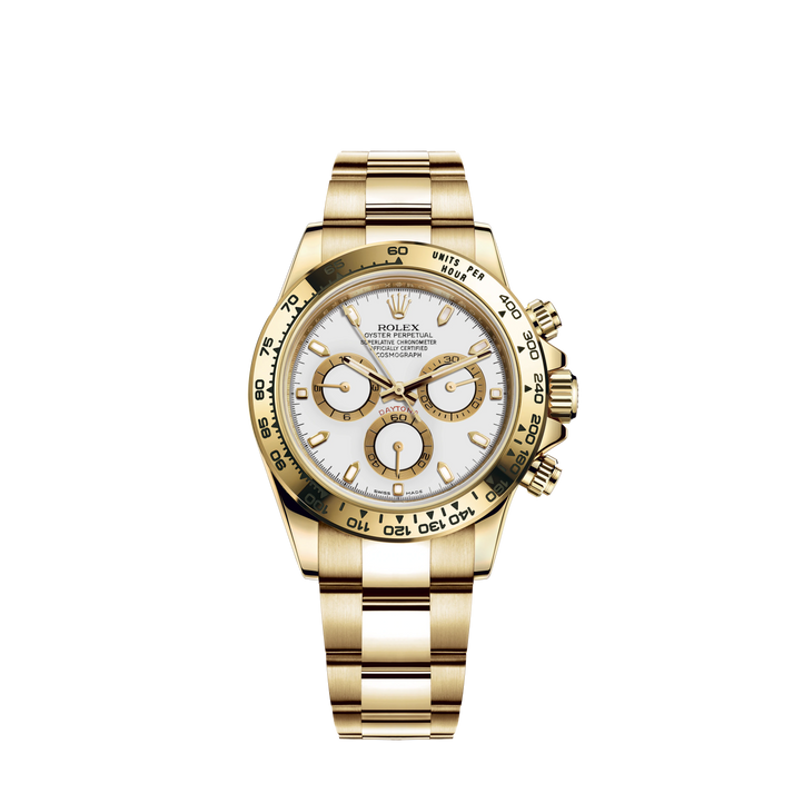 Cosmograph Daytona 40MM Oyster Bracelet White Dial 18 CT Yellow Gold Bezel With Engraved Tachymetric Scale Reference 116508