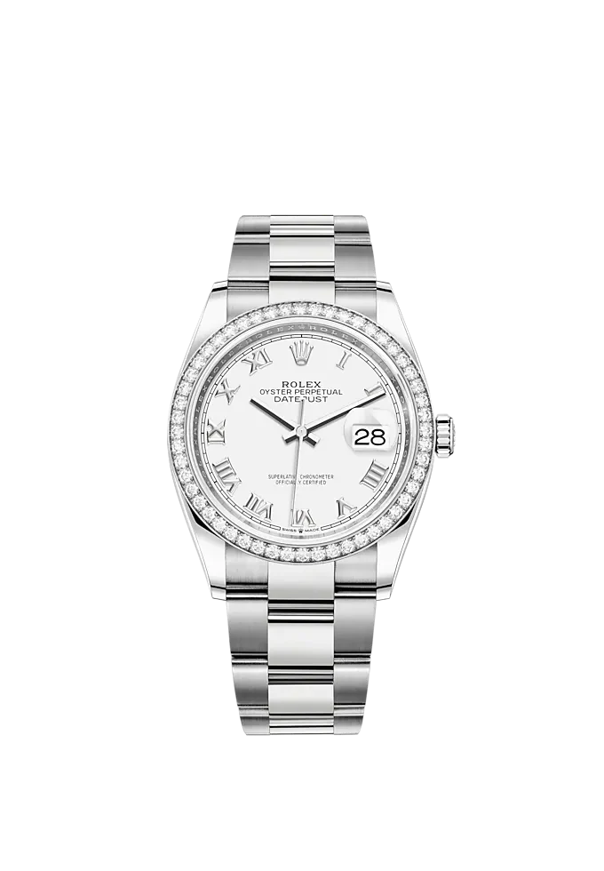 Datejust 36 36mm Oyster Bracelet Oystersteel And White Gold With White Dial Diamond-Set Bezel Reference 126284RBR