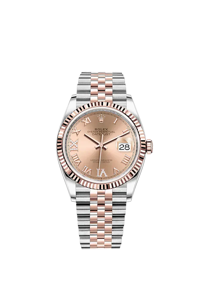 Datejust 36 36mm Oystersteel Jubilee Bracelet And Everose Gold With Rose Colour Diamond-Set Dial Fluted Bezel Reference 126231