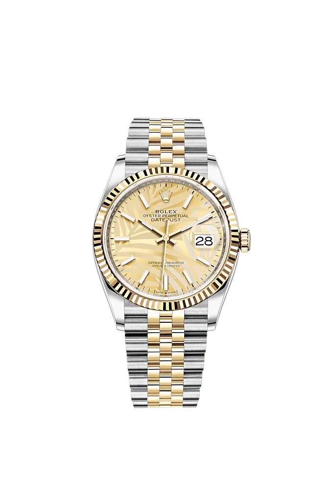 Datejust 36 36mm Oystersteel Jubilee Bracelet And Yellow Gold With Golden Dial Fluted-Motif Dial Fluted Bezel Reference 126233