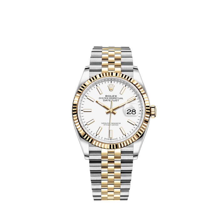 Datejust 36 36mm Oystersteel Jubilee Bracelet And Yellow Gold With White Dial Fluted Motif Fluted Bezel Reference 126233