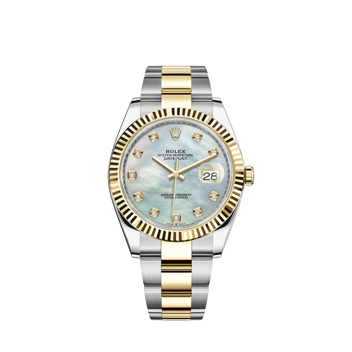 Datejust 41 41mm Oyster Bracelet Oystersteel And Yellow Gold With White Mother-Of-Pearl Diamond-Set Dial Fluted Bezel Reference 126333