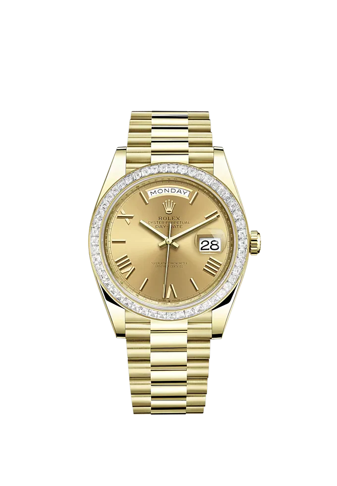 Day-Date 40 40mm President Bracelet And 18 KT Yellow Gold With Champagne-Colour Roman Dial And Diamond-Set Bezel Reference 228398TBR