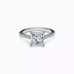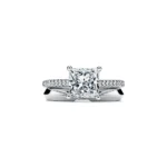 Diamondboxco Novo® Princess Cut Diamond Platinum Engagement Ring with Pavé Diamond Band