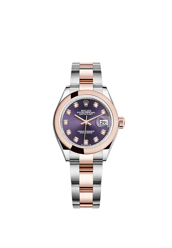 Lady-DateJust 28mm Oyster Oystersteel Bracelet And Everose Gold With Aubergine Dial Diamond-Set Dial Domed Bezel Reference 279161