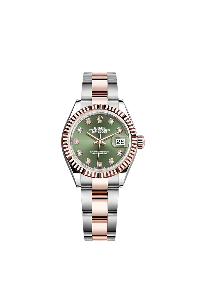 Home Rolex Lady datejusts Lady-DateJust 28mm Oyster Oystersteel Bracelet And Everose Gold With Olive-Green Dial Diamond-Set Dial And Fluted Bezel Reference 279171