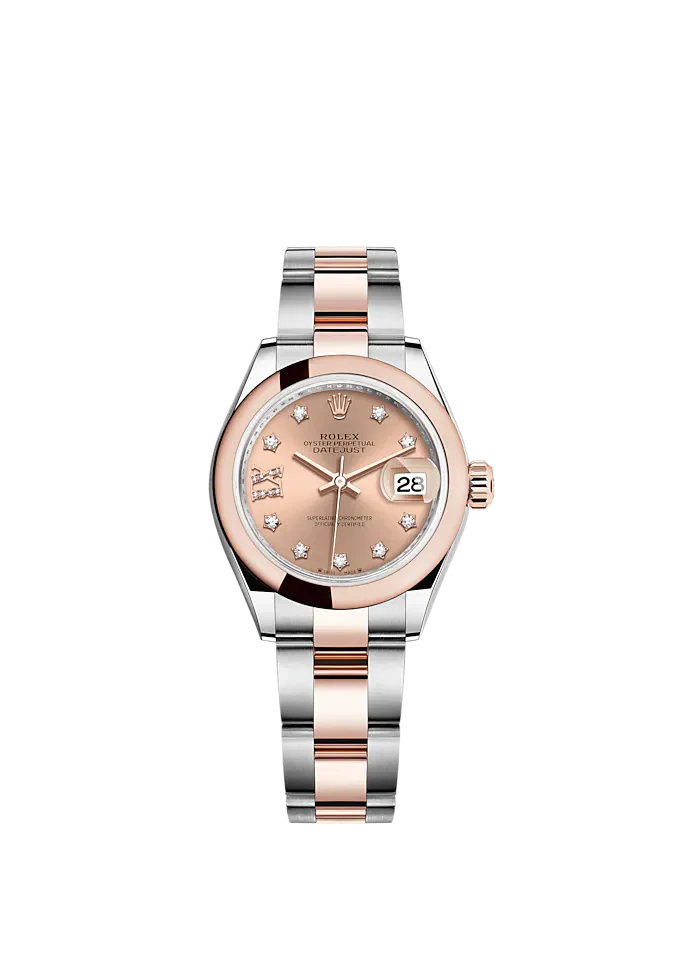 Lady-DateJust 28mm Oyster Oystersteel Bracelet And Everose Gold With Rosé-Colour Dial Diamond-Set Dial Domed Bezel Reference 279161
