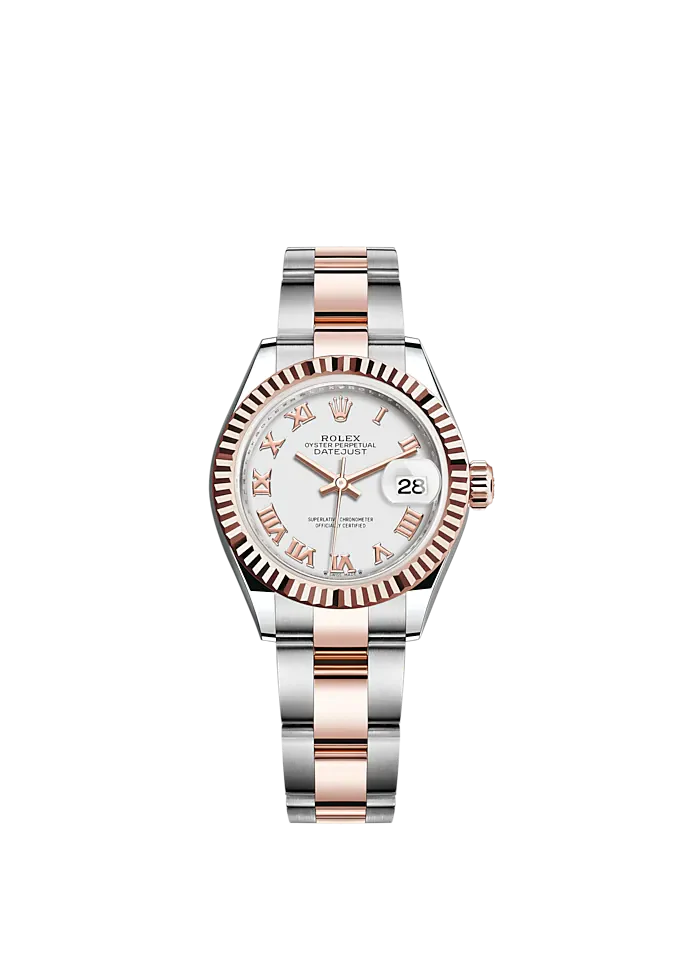 Lady-DateJust 28mm Oyster Oystersteel Bracelet And Everose Gold With White Dial And Fluted Bezel Reference 279171