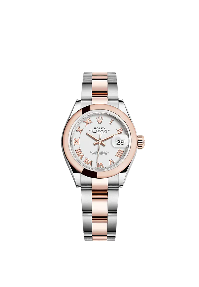 Lady-DateJust 28mm Oyster Oystersteel Bracelet And Everose Gold With White Dial Domed Bezel Reference 279161