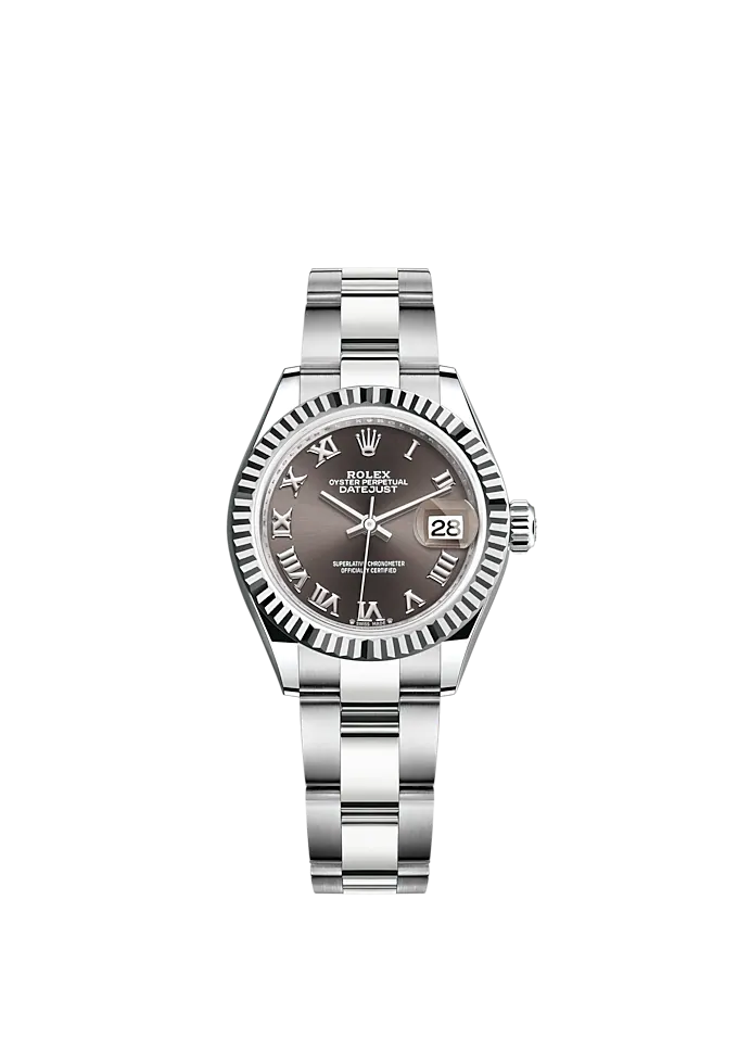 Lady-DateJust 28mm Oyster Oystersteel Bracelet And White Gold With Dark Grey Dial And Fluted Bezel Reference 279174