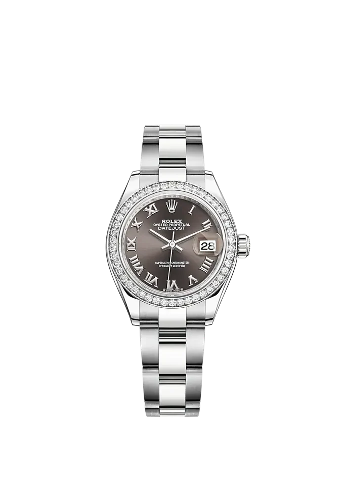 Lady-DateJust 28mm Oyster Oystersteel Bracelet And White Gold With Dark Grey Dial Diamond-Set Bezel Reference 279384RBR