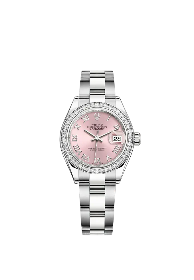 Lady-DateJust 28mm Oyster Oystersteel Bracelet And White Gold With Pink Dial Diamond-Set Bezel Reference 279384RBR