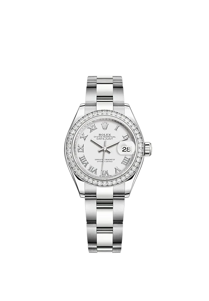 Lady-DateJust 28mm Oyster Oystersteel Bracelet And White Gold With White Dial Diamond-Set Bezel Reference 279384RBR