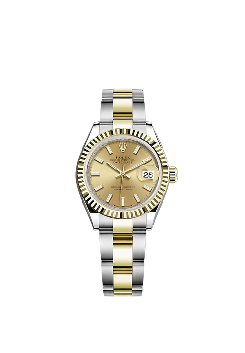 LADY-DATEJUST 28MM OYSTER OYSTERSTEEL BRACELET AND YELLOW GOLD WITH CHAMPAGNE-COLOUR DIAL FLUTED BEZEL