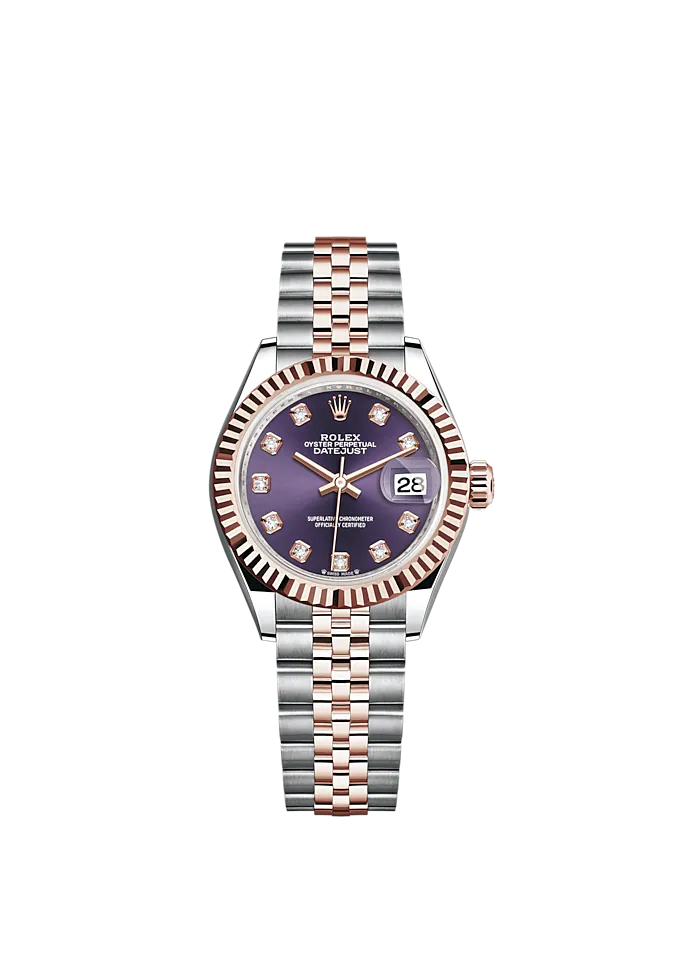 Lady-DateJust 28mm Oystersteel Jubilee Bracelet And Everose Gold With Aubergine Dial Diamond-Set Dial And Fluted Bezel Reference 279171