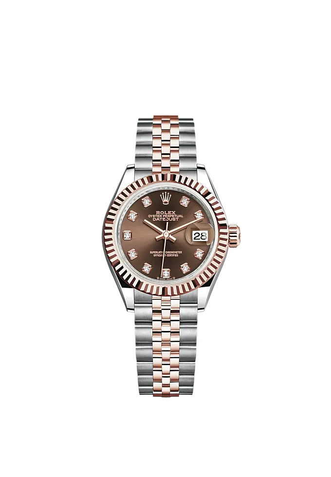 Lady-DateJust 28mm Oystersteel Jubilee Bracelet And Everose Gold With Chocolate Dial Diamond-Set Dial Fluted Bezel Reference 279171