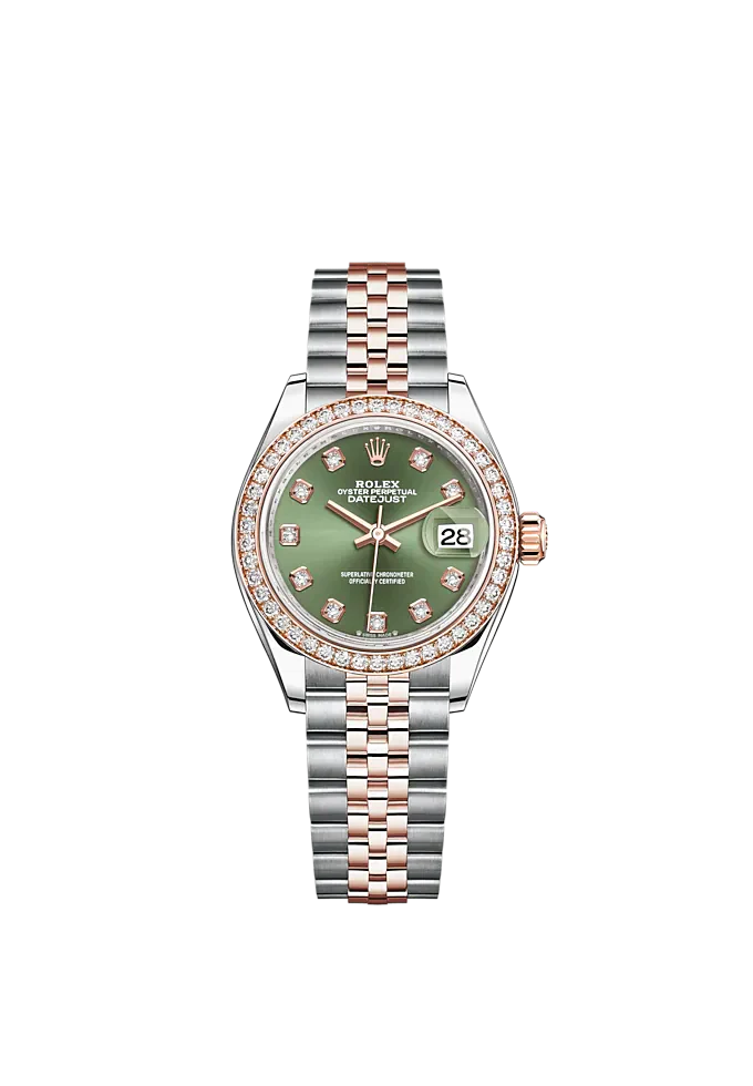 Lady-DateJust 28mm Oystersteel Jubilee Bracelet And Everose Gold With Olive-Green Dial Diamond-Set Dial Diamond-Set Bezel Reference 279381RBR