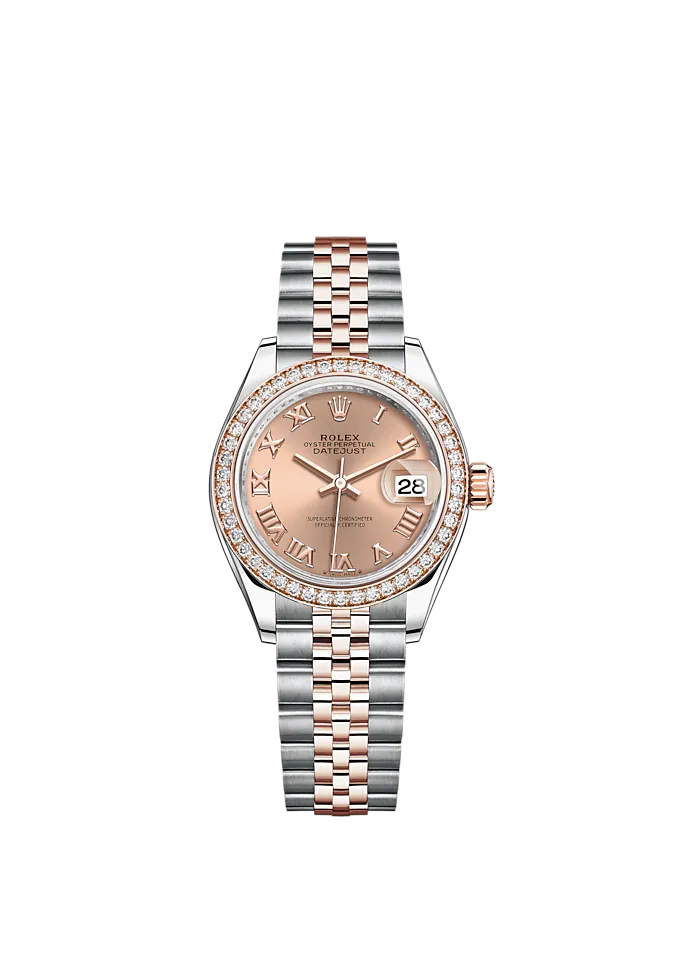 Lady-DateJust 28mm Oystersteel Jubilee Bracelet And Everose Gold With Rosé-Colour Roman Dial Diamond-Set Bezel Reference 279381RBR