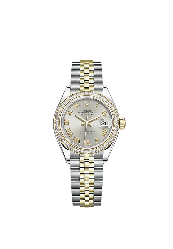 Lady-DateJust 28mm Oystersteel Jubilee Bracelet And Yellow Gold With Silver Dial Diamond-Set Bezel Reference 279383RBR