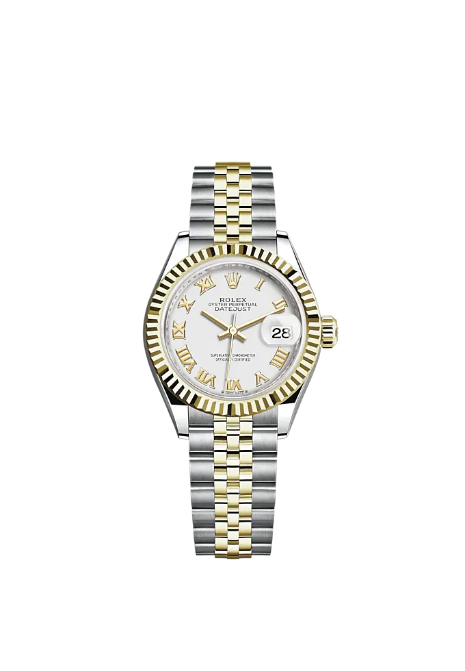 Lady-DateJust 28mm Oystersteel Jubilee Bracelet And Yellow Gold With White Dial And Fluted Bezel Reference 279173