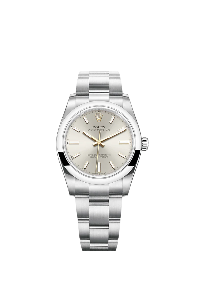 Oyster Perpetual 34 34MM Oyster Bracelet Silver Dial Domed Bezel Reference 124200
