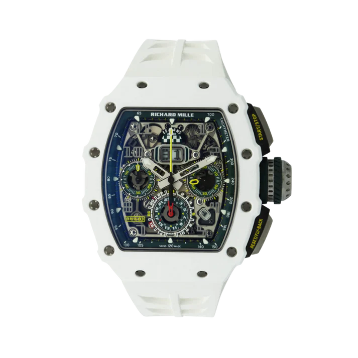 Home Richard Mille RM 011-03 Le Mans Classic White Ceramic Rubber Strap Skeleton Dial White ATZ Ceramic Case